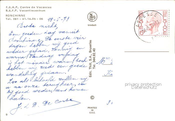 72597456 carte postale Assesse Ronchinne Centre de Vacances postalisch gelaufen Erhaltung siehe scans [LiesaD40] KatCode: 11070092003382
