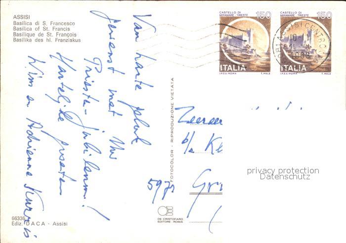 old postcard Assisi Umbria Basilica di S. Francesco postalisch gelaufen Erhaltung siehe scans [LiesaD40]