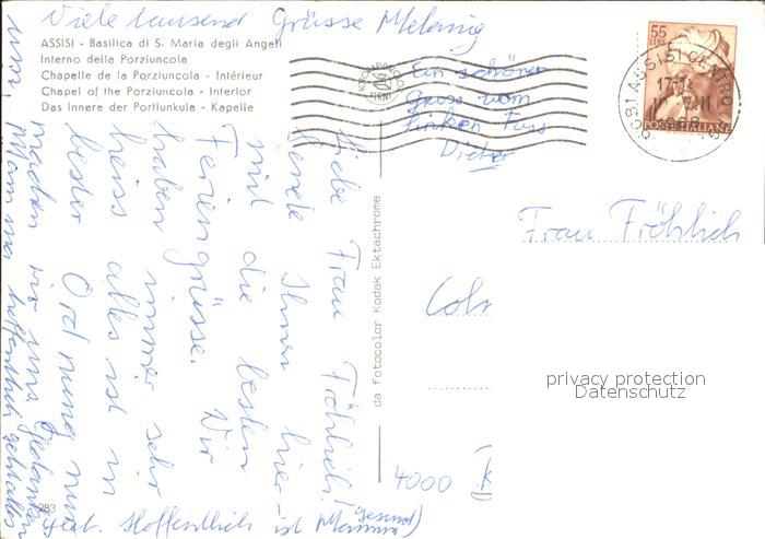 old postcard Assisi Umbria Basilica di S maria degli Angeli Interno delle Porziuncola postalisch gelaufen Erhaltung siehe scans
