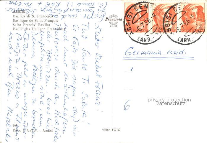 old postcard Assisi Umbria Basilica di San Francesco postalisch gelaufen Erhaltung siehe scans