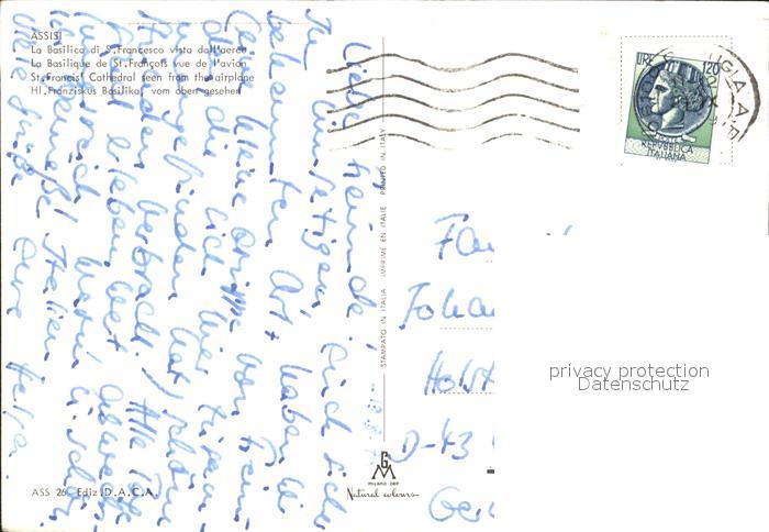 old postcard Assisi Umbria Basilica di San Francesco Basilika Fliegeraufnahme postalisch gelaufen Erhaltung siehe scans