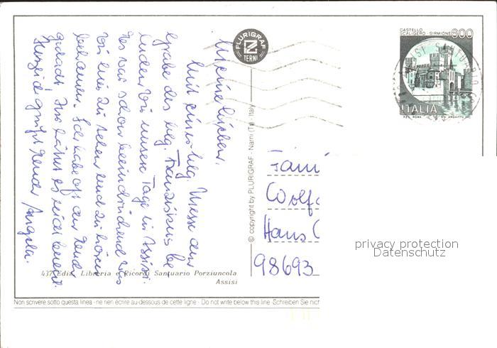 old postcard Assisi Umbria Basilica Santa Maria degli Angeli Basilika Heiligenfigur Wandgemaelde postalisch gelaufen Erhaltung siehe scans