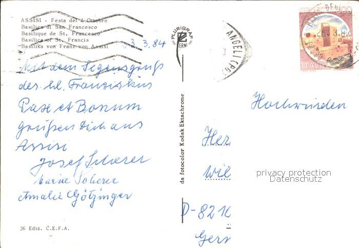 old postcard Assisi Umbria Basilica postalisch gelaufen Erhaltung siehe scans