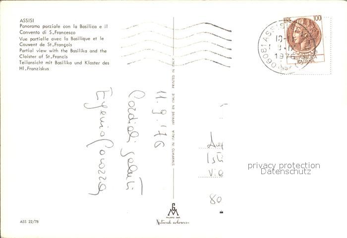 old postcard Assisi Umbria Basilika Kloster des Heiligen Franziskus postalisch gelaufen Erhaltung siehe scans