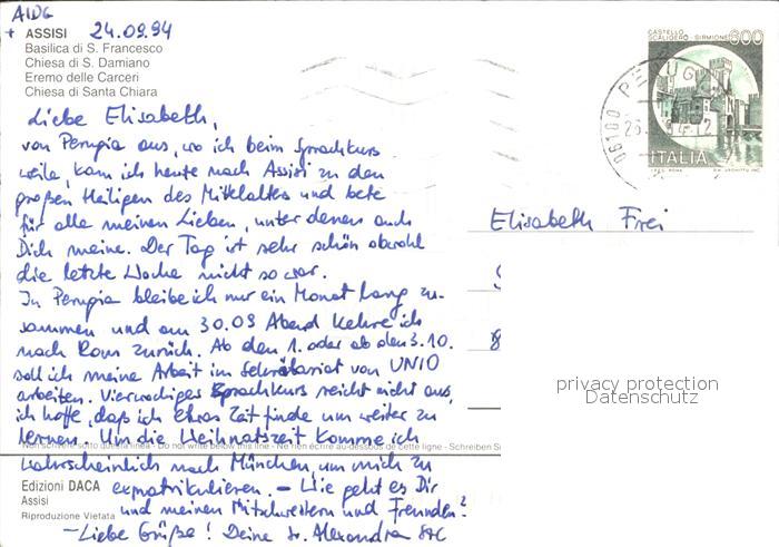 old postcard Assisi Umbria Basilika San Francesco Kirche Santa Chiara Santa Damiano postalisch gelaufen Erhaltung siehe scans