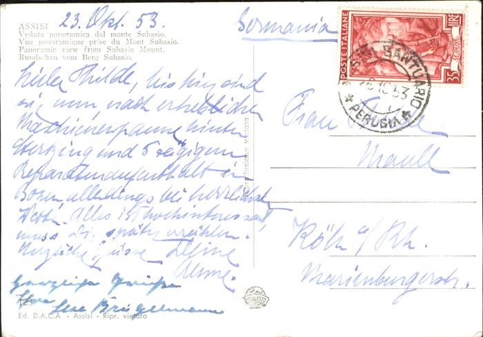 old postcard Assisi Umbria Blick vom Berg Subasio postalisch gelaufen