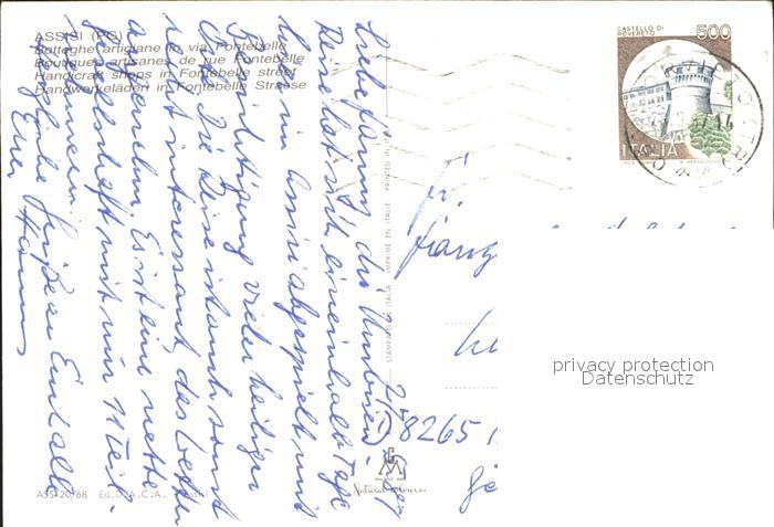 old postcard Assisi Umbria Botteghe artigiane in Via Fontebelle postalisch gelaufen Erhaltung siehe scans