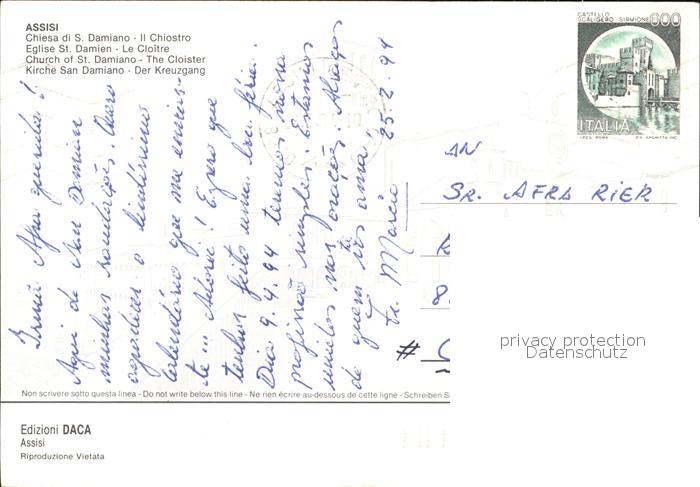 old postcard Assisi Umbria Chiesa di San Damiano Chiostro Kirche Kreuzgang postalisch gelaufen Erhaltung siehe scans