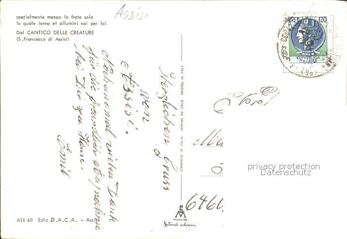 old postcard Assisi Umbria dal Cantico delle creature S.Francesco di Assisi postalisch gelaufen Erhaltung siehe scans