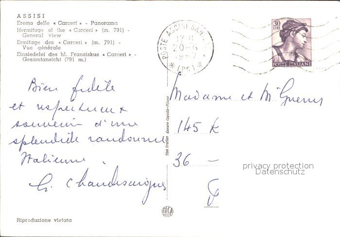 old postcard Assisi Umbria Einsiedeln des heiligen Franziskus postalisch gelaufen Erhaltung siehe scans