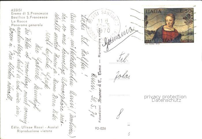 old postcard Assisi Umbria Eremo di S. Francesco Rocca postalisch gelaufen Erhaltung siehe scans