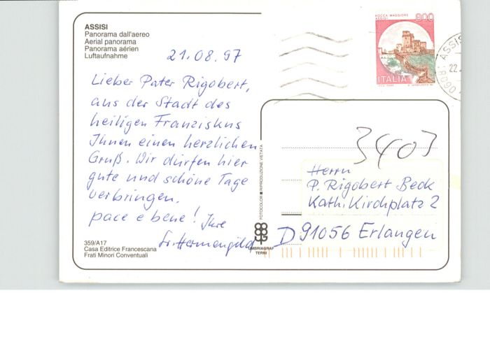 old postcard Assisi Umbria Fliegeraufnahme postalisch gelaufen