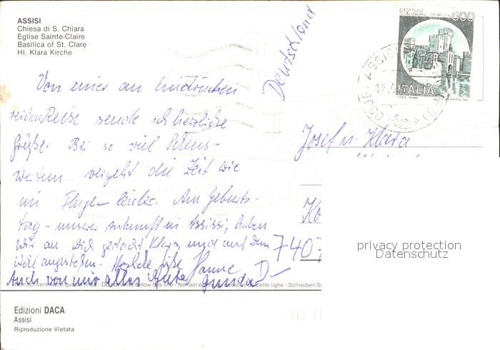 old postcard Assisi Umbria Kirche Heilige Klara postalisch gelaufen Erhaltung siehe scans