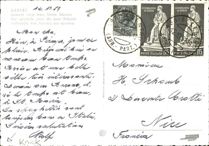old postcard Assisi Umbria Monte Subasio postalisch gelaufen