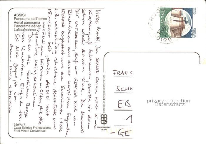 old postcard Assisi Umbria Panorama dall aereo postalisch gelaufen Erhaltung siehe scans