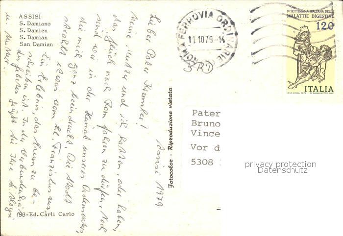 old postcard Assisi Umbria San Damian Chiesa Kirche postalisch gelaufen Erhaltung siehe scans