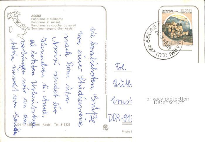 old postcard Assisi Umbria Sonnenuntergang mit Burg postalisch gelaufen Erhaltung siehe scans