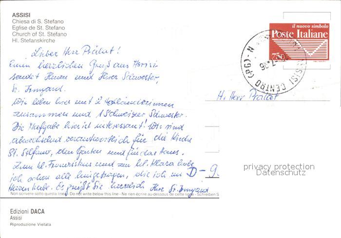 old postcard Assisi Umbria Stefanskirche postalisch gelaufen Erhaltung siehe scans