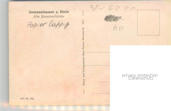 43136394 Assmannshausen Alte Bauernschänke postalisch nicht gelaufen Erhaltung siehe scans [KathaD81] KatCode: 11110006439013