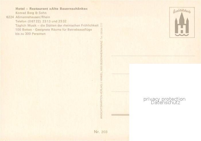 73653730 Assmannshausen Alte Bauernschaenke Fachwerkhaus postalisch nicht gelaufen Erhaltung siehe scans [FriedD77] KatCode: 11110006439013