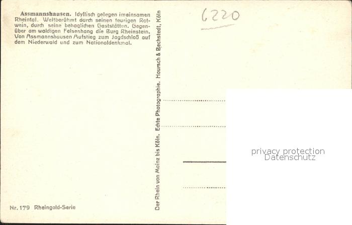 72294887 Assmannshausen Blick ins Rheintal Rheingold Serie Nr. 179 postalisch nicht gelaufen Erhaltung siehe scans KatCode: 11110006439013