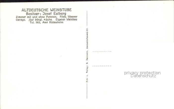 72095250 Assmannshausen Eulbergs Altdeutsche Weinstube postalisch nicht gelaufen Erhaltung siehe scans KatCode: 11110006439013