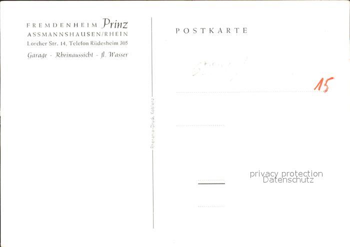 31715231 Assmannshausen Fremdenheim Prinz Kuenstlerkarte postalisch nicht gelaufen Erhaltung siehe scans KatCode: 11110006439013