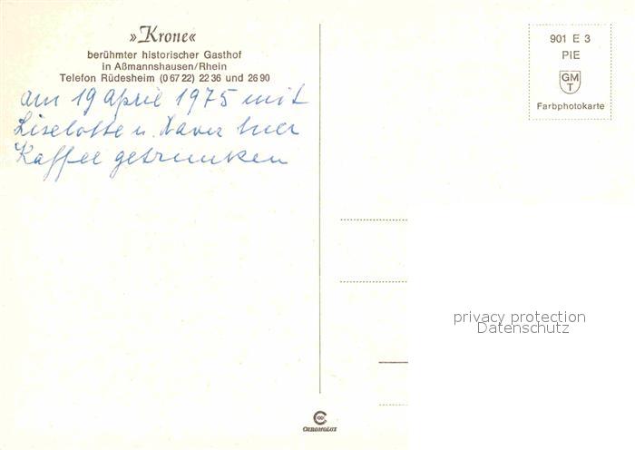 72699091 Assmannshausen Gasthof Krone postalisch nicht gelaufen Erhaltung siehe scans [KathaD79] KatCode: 11110006439013