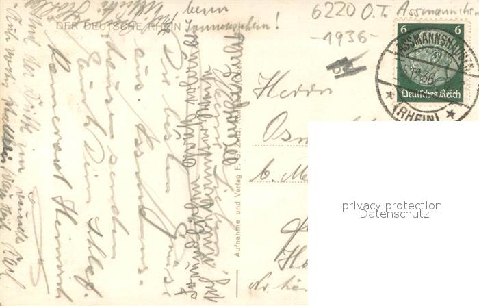 73697343 alte Postkarte Assmannshausen Gesamtansicht Rhein postalisch gelaufen Erhaltung siehe scans [LiesaD40] KatCode: 11110006439013