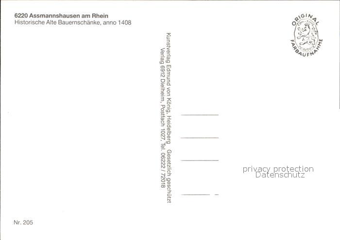 72553258 Assmannshausen Historische Alte Bauernschaenke postalisch nicht gelaufen Erhaltung siehe scans [WerneD78] KatCode: 11110006439013