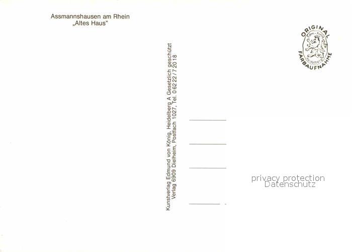 72878745 Assmannshausen Historisches Altes Haus Gaststaette Fachwerkhaus postalisch nicht gelaufen Erhaltung siehe scans [FriedD77] KatCode: 11110006439013