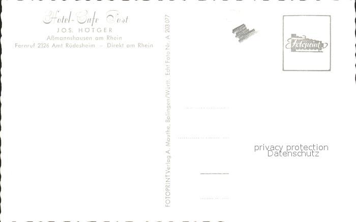 72095176 Assmannshausen Hotel Cafe Post postalisch nicht gelaufen Erhaltung siehe scans KatCode: 11110006439013