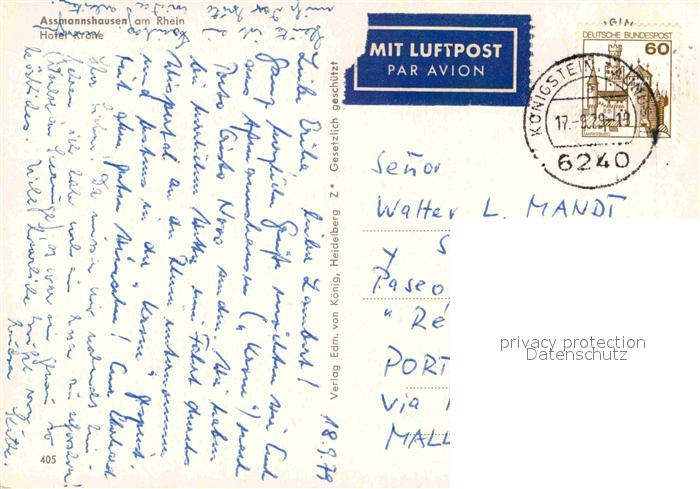 72882103 alte Postkarte Assmannshausen Hotel Krone postalisch gelaufen Erhaltung siehe scans [FriedD77] KatCode: 11110006439013