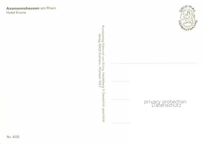 72878801 Assmannshausen Hotel Krone postalisch nicht gelaufen Erhaltung siehe scans [FriedD77] KatCode: 11110006439013