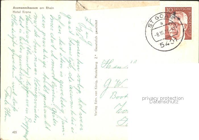 72364850 alte Postkarte Assmannshausen Hotel Krone postalisch gelaufen Erhaltung siehe scans KatCode: 11110006439013