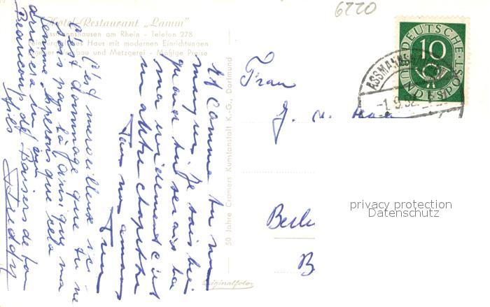 43362401 alte Postkarte Assmannshausen Hotel Lamm postalisch gelaufen Erhaltung siehe scans [WerneD78] KatCode: 11110006439013