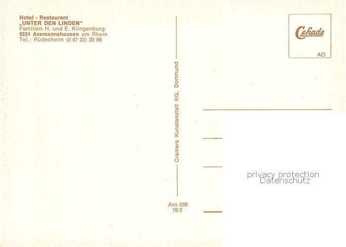72934067 Assmannshausen Hotel Restaurant Unter den Linden postalisch nicht gelaufen Erhaltung siehe scans [LiesaD40] KatCode: 11110006439013