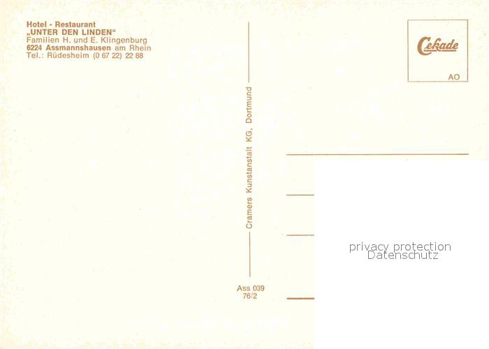 72854737 Assmannshausen Hotel Unter den Linden postalisch nicht gelaufen Erhaltung siehe scans [AndreD76] KatCode: 11110006439013