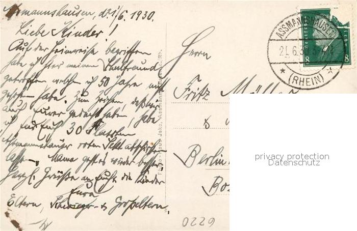 43189890 alte Postkarte Assmannshausen Im Restaurant postalisch gelaufen Erhaltung siehe scans [FriedD77] KatCode: 11110006439013