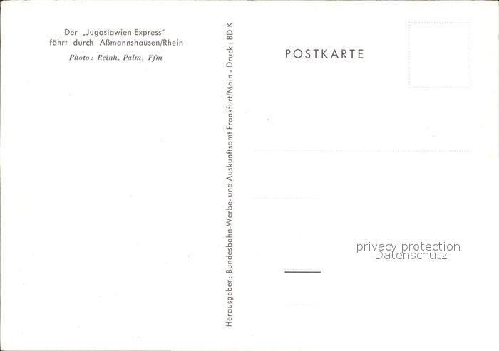 72293362 Assmannshausen Jugoslawien-Express postalisch nicht gelaufen Erhaltung siehe scans KatCode: 11110006439013