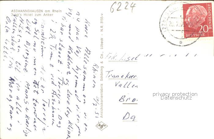 41580993 Assmannshausen JUngs Hotel zum Anker Schiff postalisch gelaufen Erhaltung siehe scans Alte Ansichtskarte Postkarte alte Postkarte Stef Katcode 11110006439013