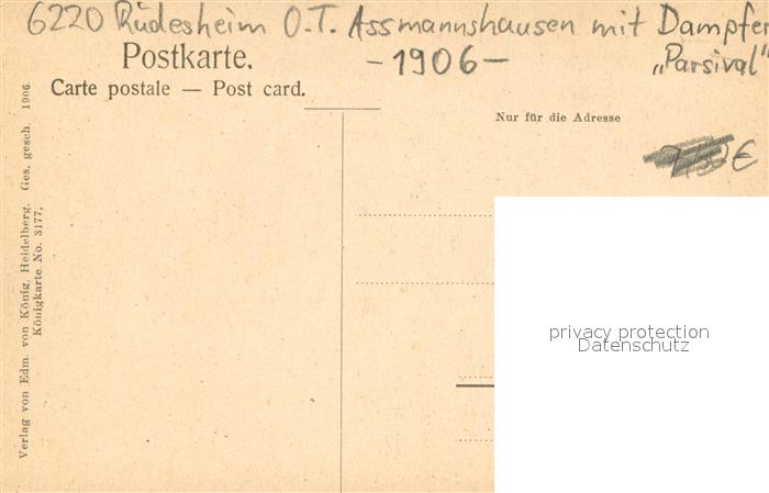 73697370 Assmannshausen mit Damper Parsival postalisch nicht gelaufen Erhaltung siehe scans [LiesaD40] KatCode: 11110006439013