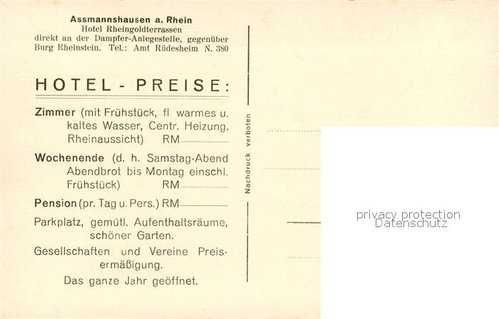 73248463 Assmannshausen Nationaldenkmal Rheingoldterrasse Burg Rheinstein Loreley Die Pfalz bei Caub postalisch nicht gelaufen Erhaltung siehe scans [WerneD78] KatCode: 11110006439013