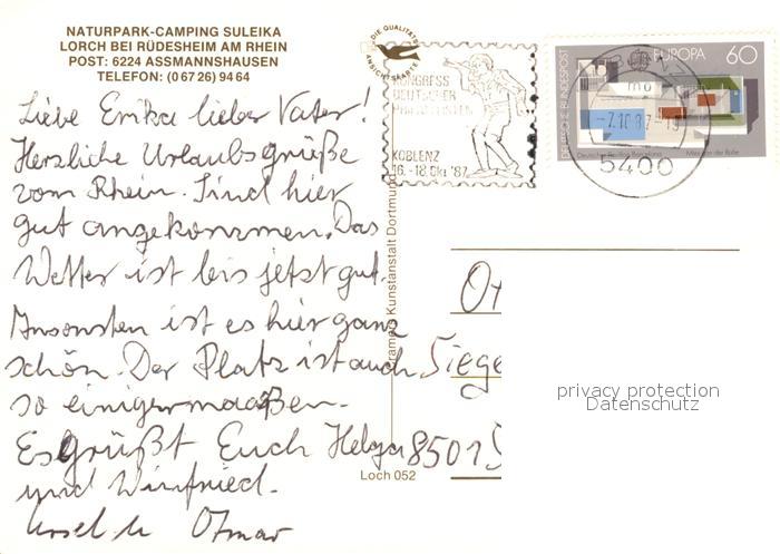 73205041 alte Postkarte Assmannshausen Naturpark-Camping Suleika postalisch gelaufen Erhaltung siehe scans [NatalD47] KatCode: 11110006439013