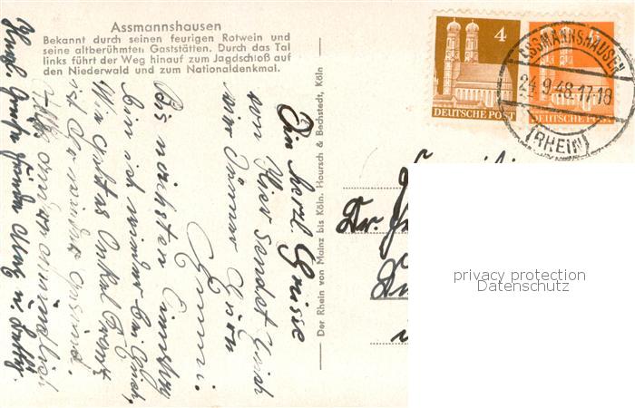 73777989 alte Postkarte Assmannshausen Panorama Blick ueber den Rhein postalisch gelaufen Erhaltung siehe scans [FriedD77] KatCode: 11110006439013