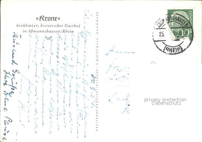 72105072 alte Postkarte Assmannshausen Restaurant Krone postalisch gelaufen Erhaltung siehe scans KatCode: 11110006439013