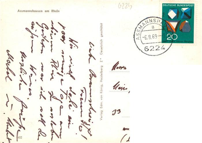 73935836 alte Postkarte Assmannshausen Rhein Fliegeraufnahme postalisch gelaufen Erhaltung siehe scans [WerneD78] KatCode: 11110006439013