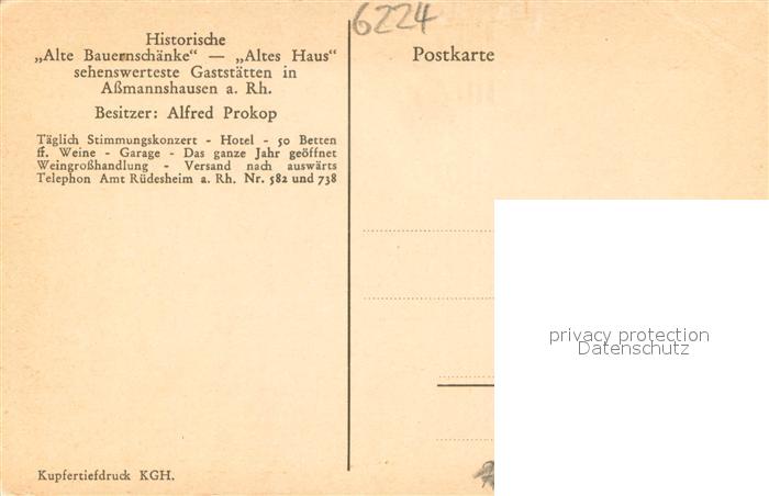 73706541 Assmannshausen Rhein Historische Alte Bauernschaenke postalisch nicht gelaufen Erhaltung siehe scans [WerneD78] KatCode: 11110006439013