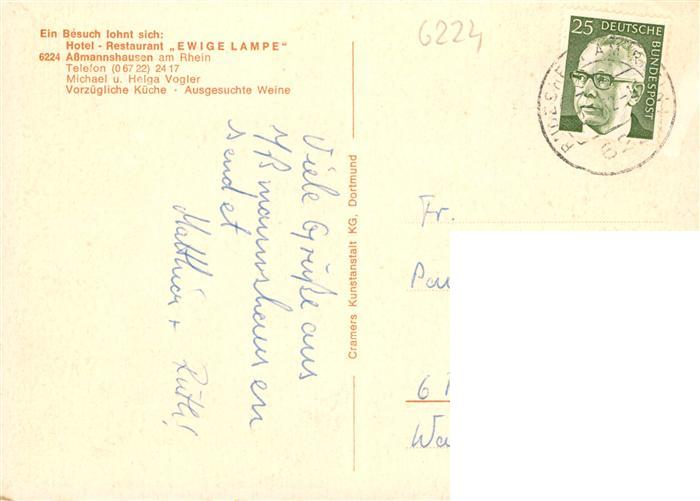 73935852 alte Postkarte Assmannshausen Rhein Hotel Restaurant Ewige Lampe Gastraeume Bar postalisch gelaufen Erhaltung siehe scans [WerneD78] KatCode: 11110006439013
