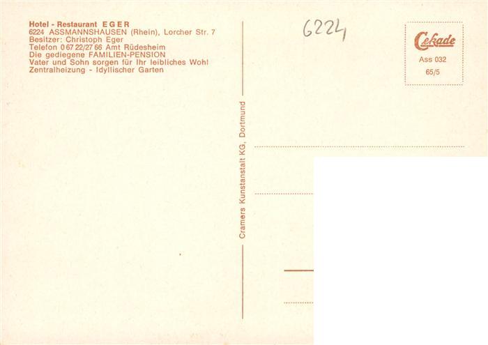 73935921 Assmannshausen Rhein Panorama Burgruine Hotel Restaurant Eger Gastraeume postalisch nicht gelaufen Erhaltung siehe scans [FriedD77] KatCode: 11110006439013